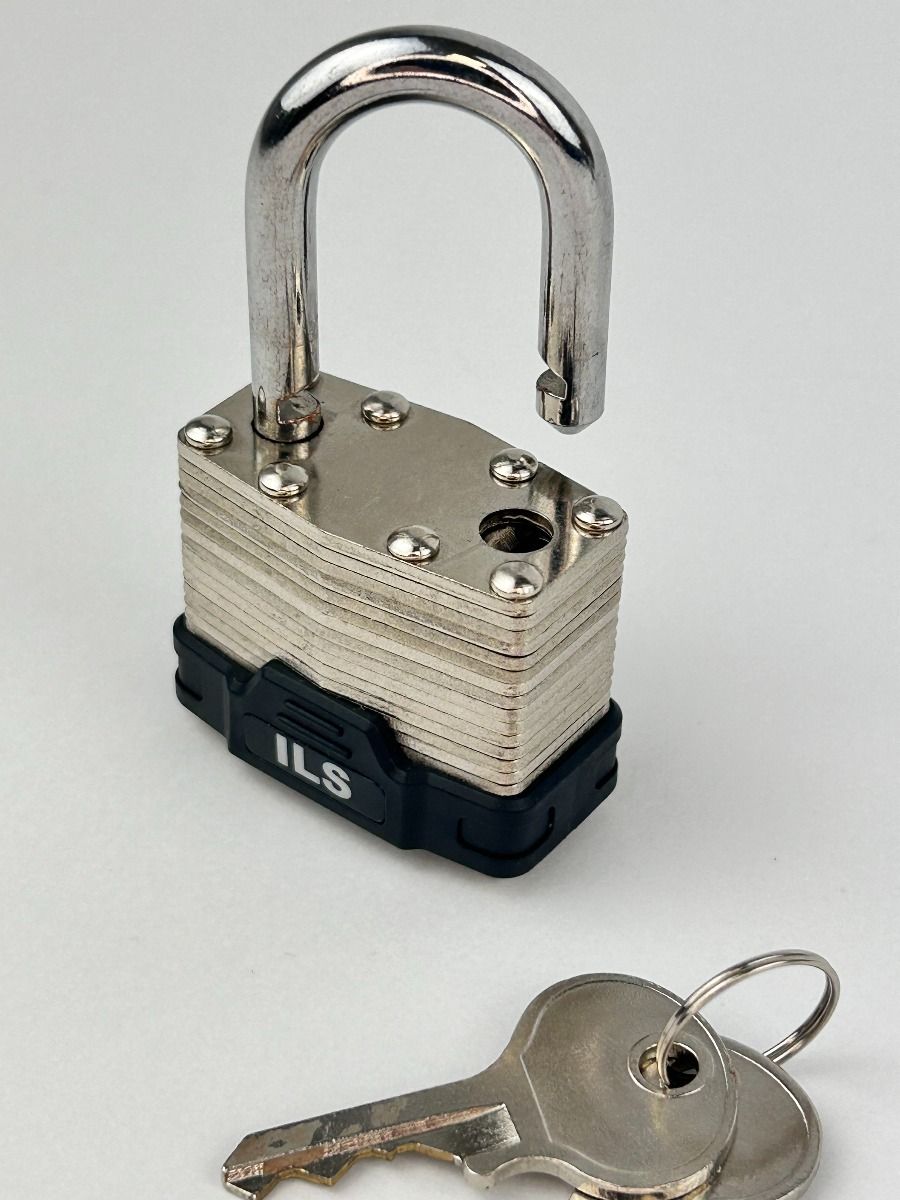 50mm Nickel plated laminated steel padlock with a hardened steel shackle
