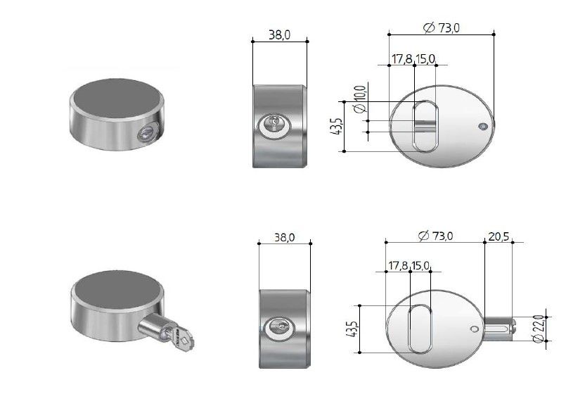 ▪ 3 keys suppled with each lock