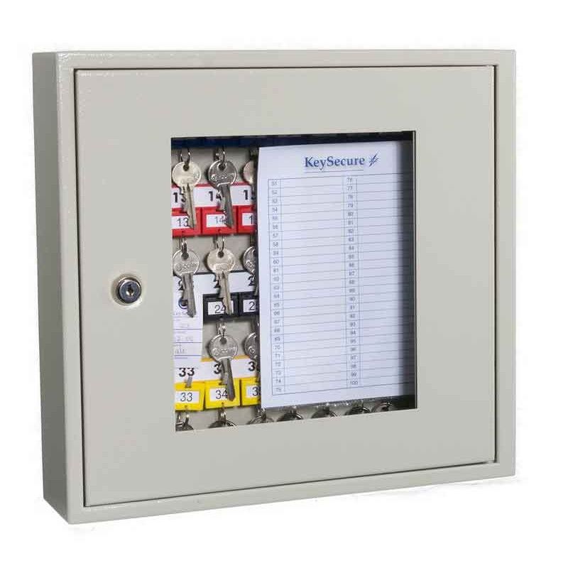 Glazed door allows "at a glance" viewing of what keys have been taken without having to open the door.