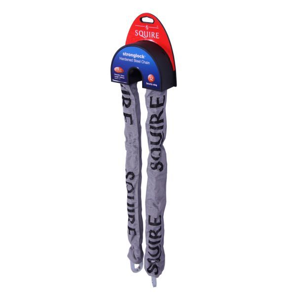 The stronglock range of Squire Chains encompasses the X and Y ranges. These chains are made from hardened steel and with 8mm and 10mm chain link diameter they offer high security whilst being lighter to carry than the stronghold range and offering excellent value for money. These chains are idea for securing storage areas, vehicles, motorcycles, site and plant equipment. They are pacKAged in the tidy retail packs and have attractive silver grey sleeve.